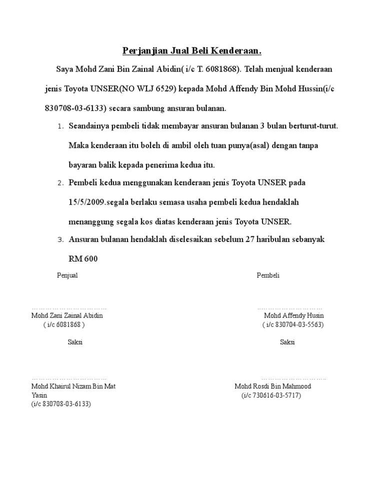 Contoh surat perjanjian sambung bayar loan kereta they are so many great picture list that may become . 14 contoh surat agreement sambung bayar . Bahawasanya surat perjanjian ini diperbuat pada . Tujuan perjanjian ini dibuat adalah untuk menjual . Contoh surat perjanjian jual beli kereta kaedah sambung bayar contoh surat.